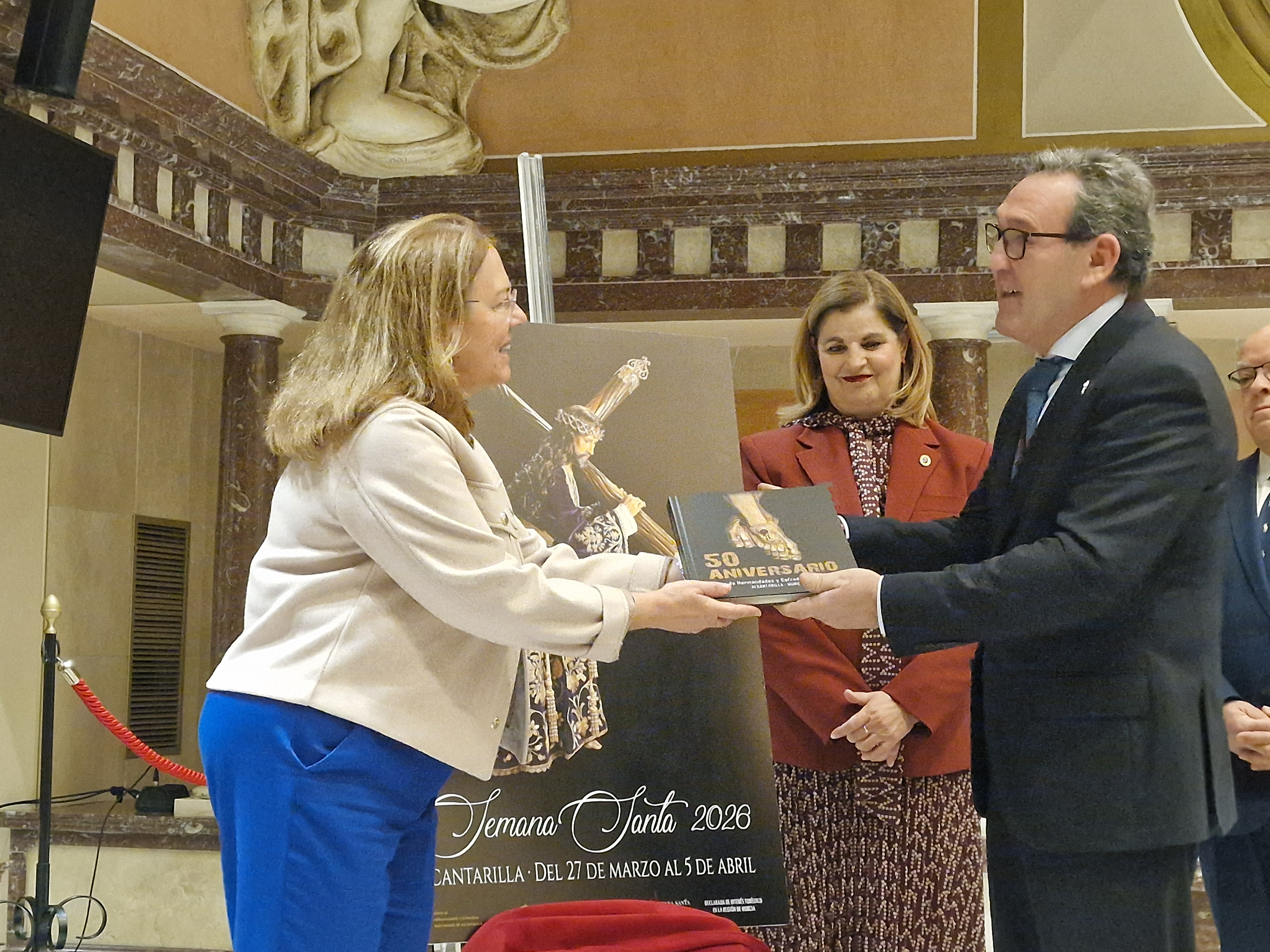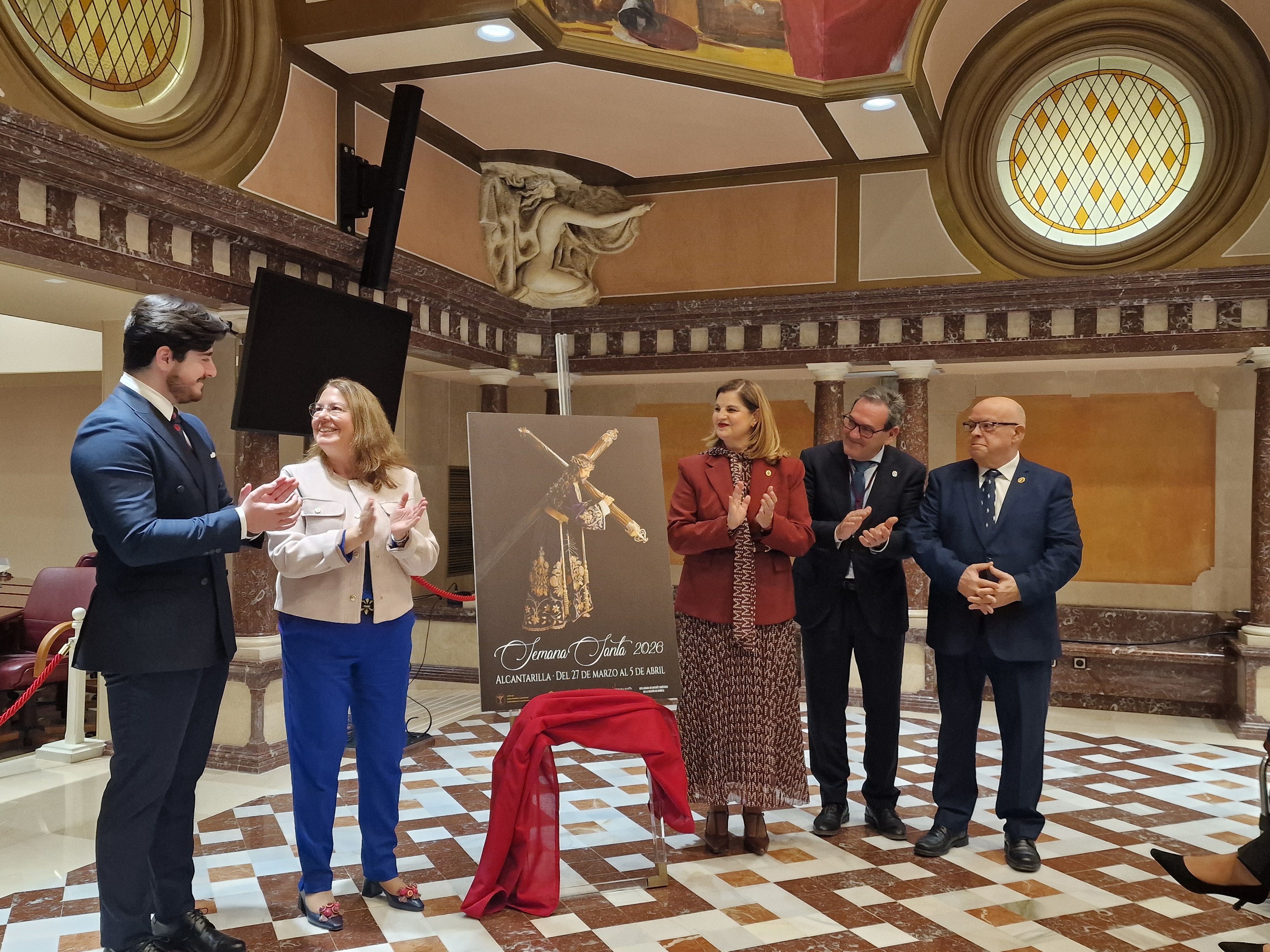 La Asamblea Regional de Murcia ha acogido esta mañana el acto de presentación del cartel anunciador de la Semana Santa 2026 de Alcantarilla. El acto, celebrado en el Patio de las Comarcas, ha estado presidido por la presidenta de la Asamblea Regional, Visitación Martínez, quien ha estado acompañada de la alcaldesa de Alcantarilla, Francisca Terol, y del autor del cartel, José Francisco Sánchez Rosique.