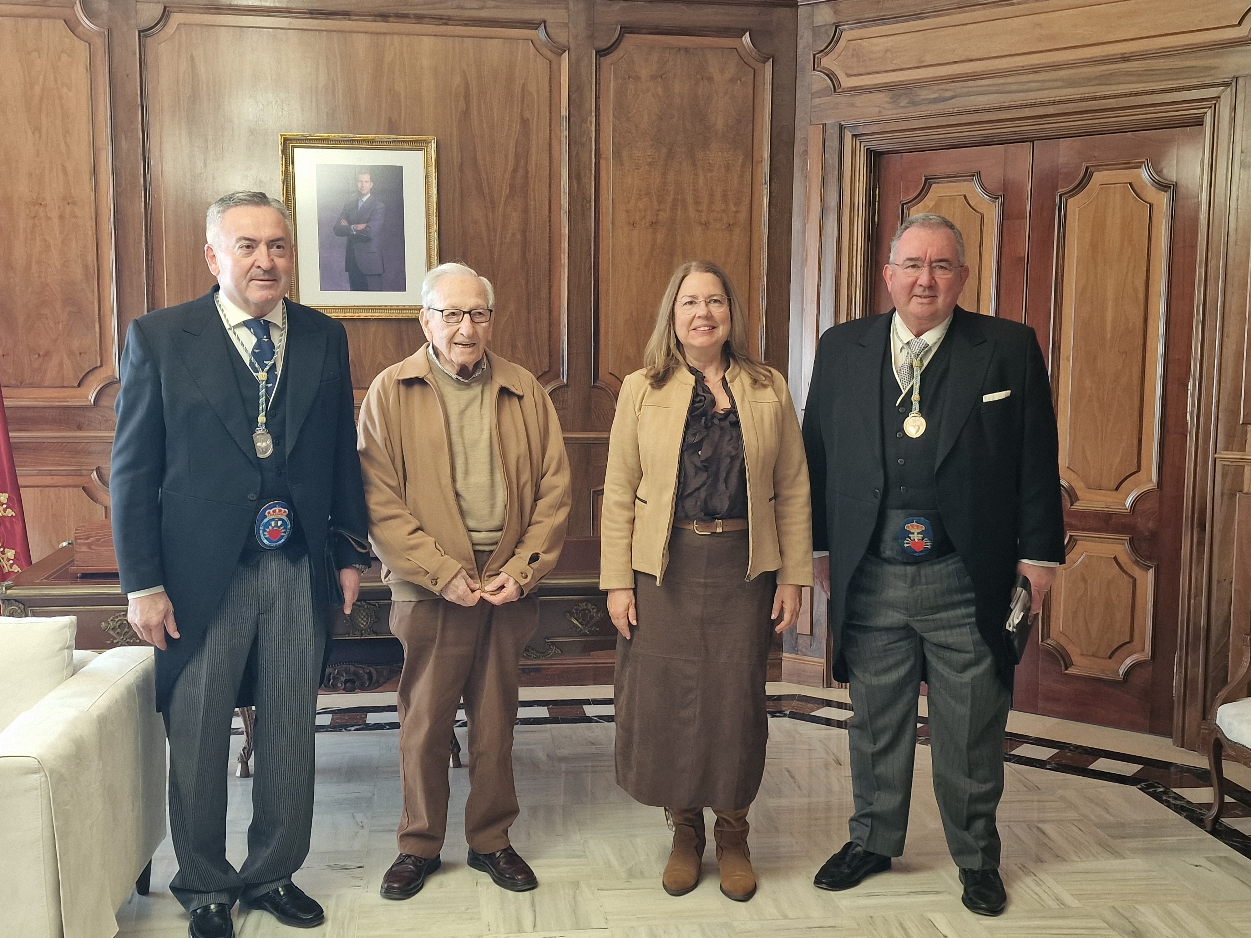 La presidenta de la Asamblea Regional, Visitación Martínez, ha entregado esta mañana el donativo correspondiente a la tradicional “capacha”, la cuestación benéfica anual organizada por los Hermanos del Santo y Real Hospital de Caridad. El donativo fue recogido por Jesús Pereda y Francisco Sastre, miembros de la Junta de Gobierno del Hospital.